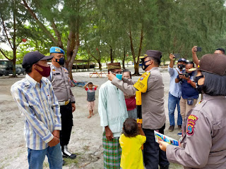 Sementara Wakapolres Kompol Rudi Candra SH. Menjelaskan “Kali ini kami melakukan strategi mengajak para pemilik lapak dan pengelola untuk menjadi duta tentang protokol kesehatan kepada seluruh wisatawan yang ada, mereka akan menegur para wisatawan yang tidak menggunakan masker atau menjual masker kepada para wisatawan karena di dalam wilayah pantai ini harus wajib masker dan harus menjaga jarak juga mengajak menjaga kebersihan disekitar pantai yang mereka kunjungi.