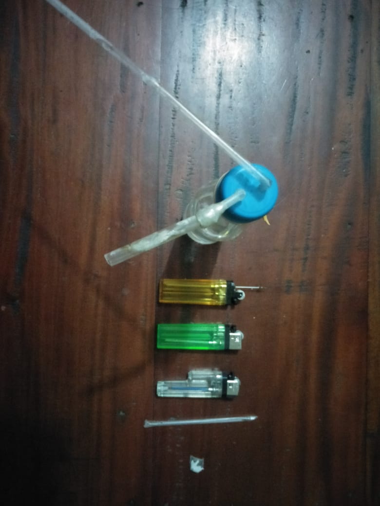 Langsung dilakukan penggeledahan dan ditemukan satu botol bong terbuat dari boto lasegar , satu kaca pirex berisi narkotika di duga sabu, satu mancis warna kuning lengkap dengan jarum, satu mancis warna hijau dan satu sendok pipet, yang ditemukan dari ruangan tersebut yang ditutupi bantal.